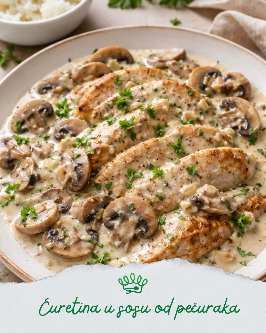 Sastojci:400 g ćurećeg belog mesa (šnicle)400g svežih šampinjona, isečenih200g grčkog jogurta OlympusSo, biber, origano i začini po ukusuPriprema: Grilovati ćureće belo meso iseckano na kockice ili tr...